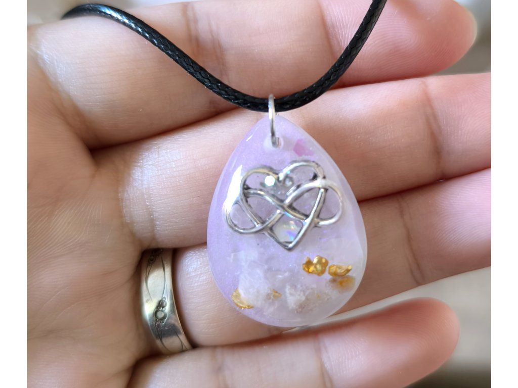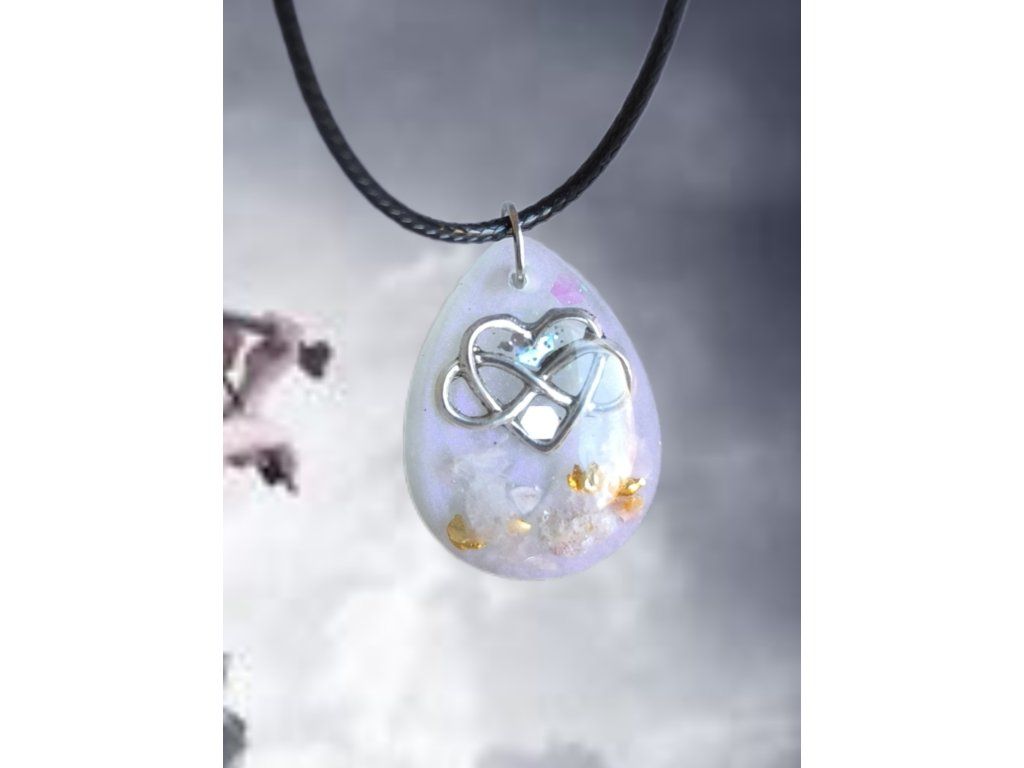 Jemný fantasy amulet se symbolem srdce a nekonečna, který představuje trvalou lásku, spojení a harmonii.