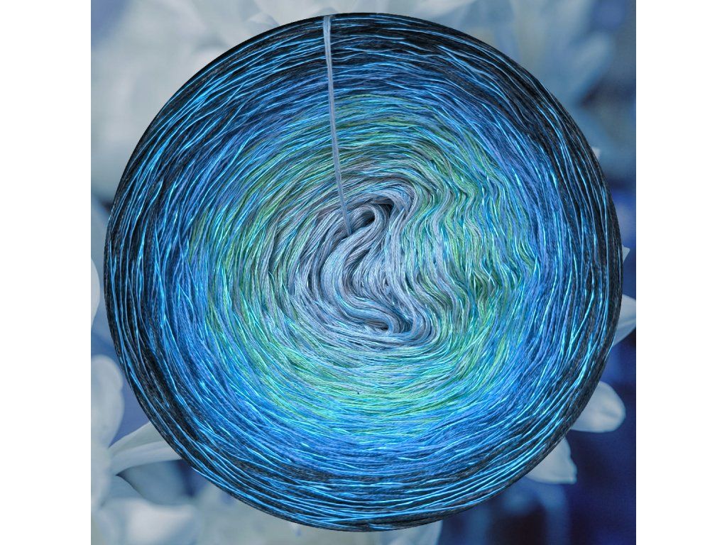 Složení 50% bavlna/ 50% akryl, 3 nitka, klubíčko se skládá z celkem 6 barev + modrá viskóza