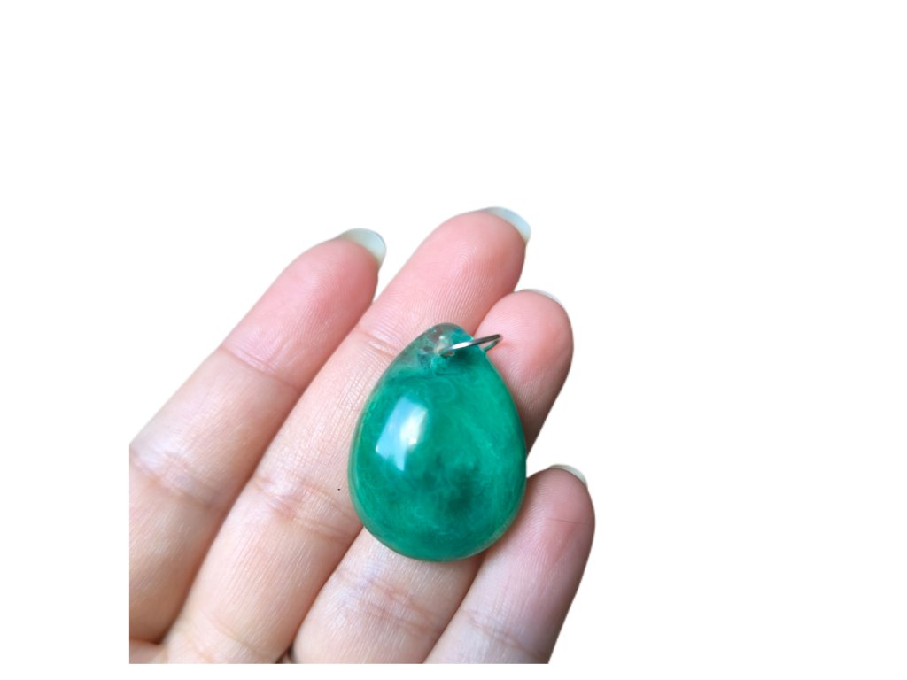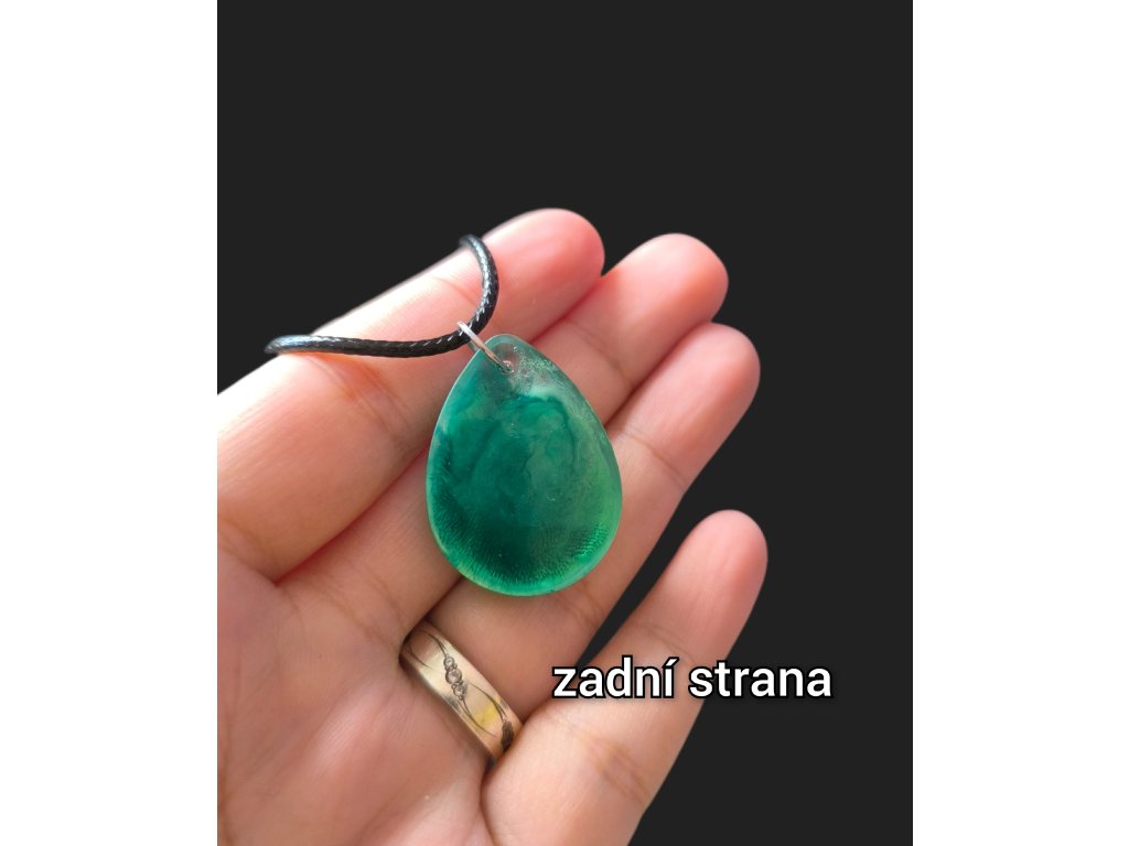 • Jedinečný přívěsek z epoxidové pryskyřice ve tvaru kapky. Jemné fosforeskující tóny zelené.