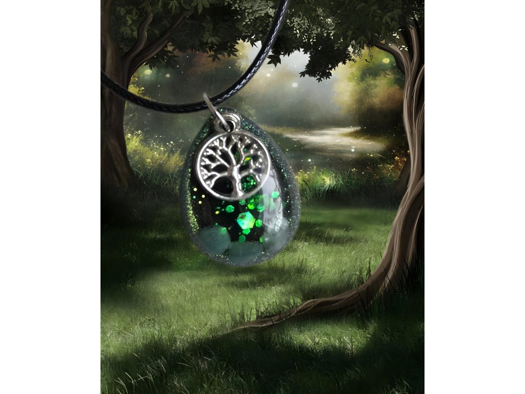 Magický přívěsek s avanturínem a symbolem Stromu života.